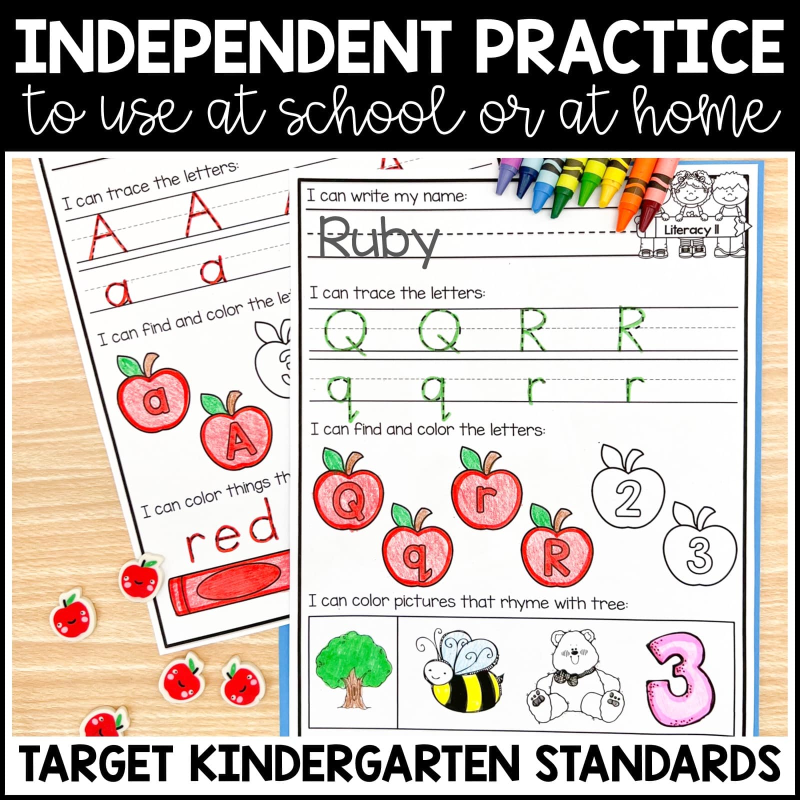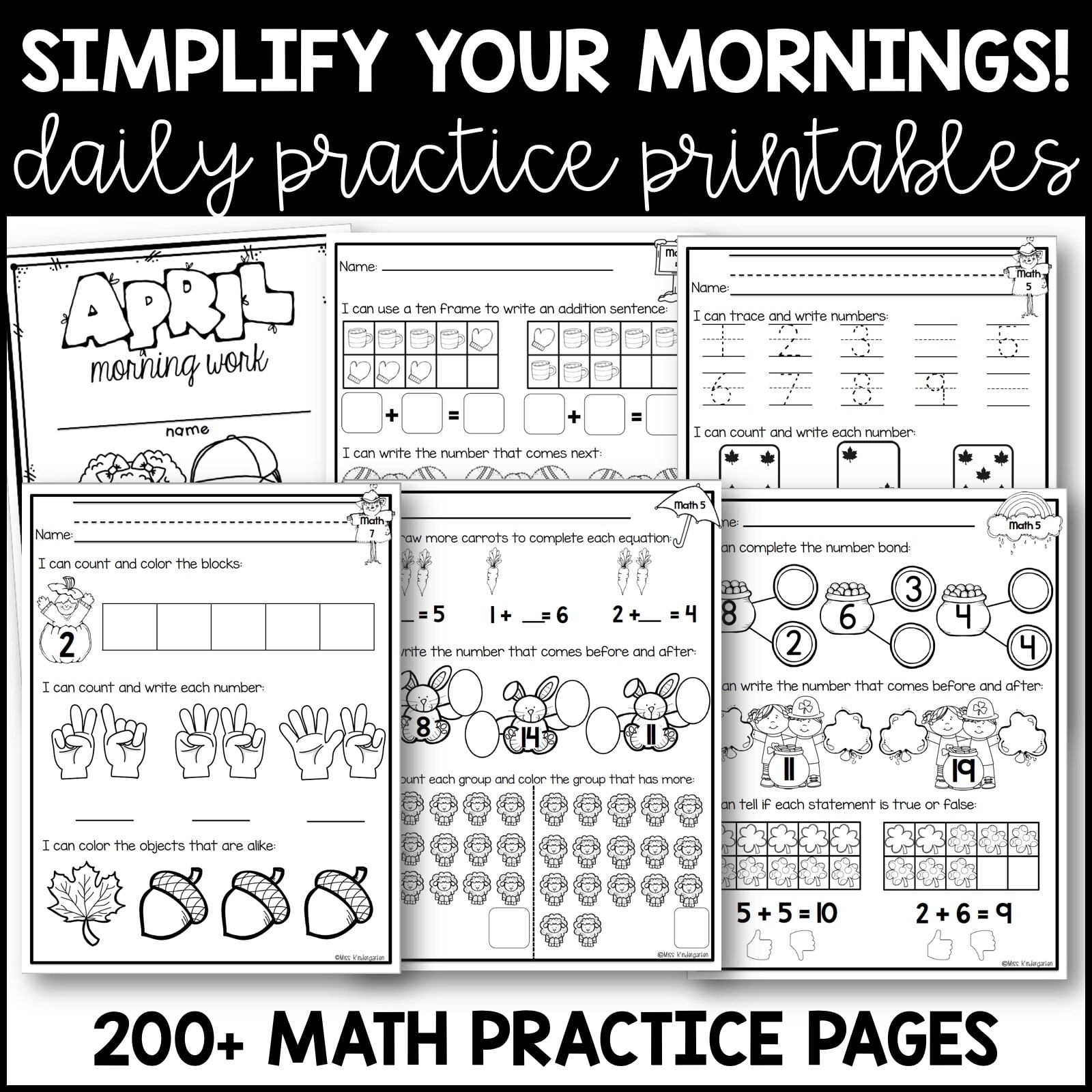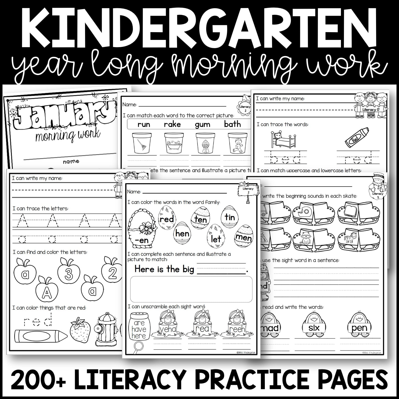 Morning work for the entire school year! These kindergarten morning work printables are perfect for having your students review math and literacy skills while easing into their morning routine. Kick-off your mornings with seatwork printables that target kindergarten standards while developing a peaceful morning time.
