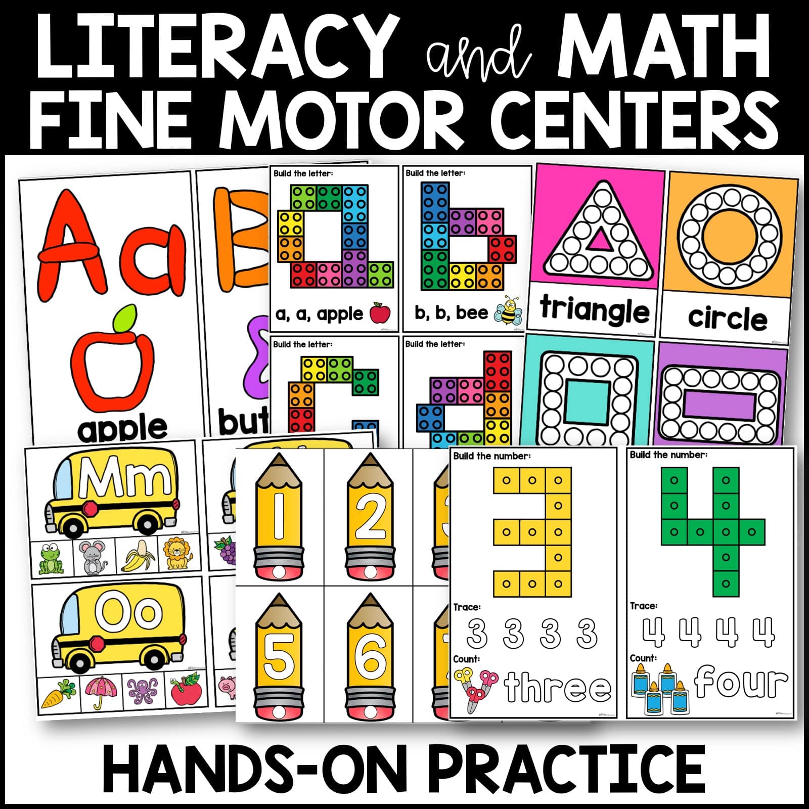 These fine motor centers include alphabet practice, number practice, 2D shapes, and other math and literacy skills that align with the kindergarten standards so your students can continue building foundational kindergarten skills. They are perfect to use during literacy stations, math centers, small group instruction or used as an intervention tool for students that need additional practice.