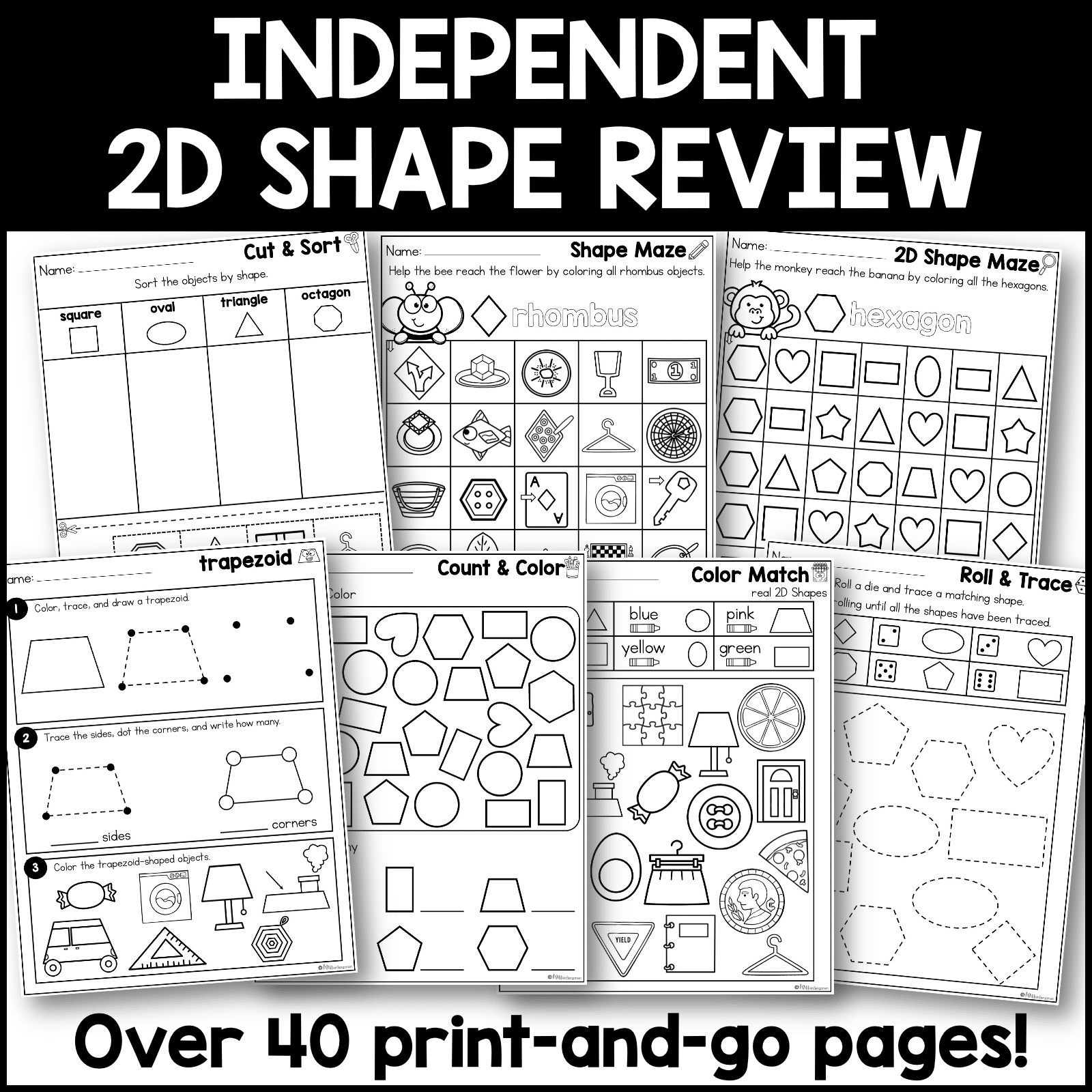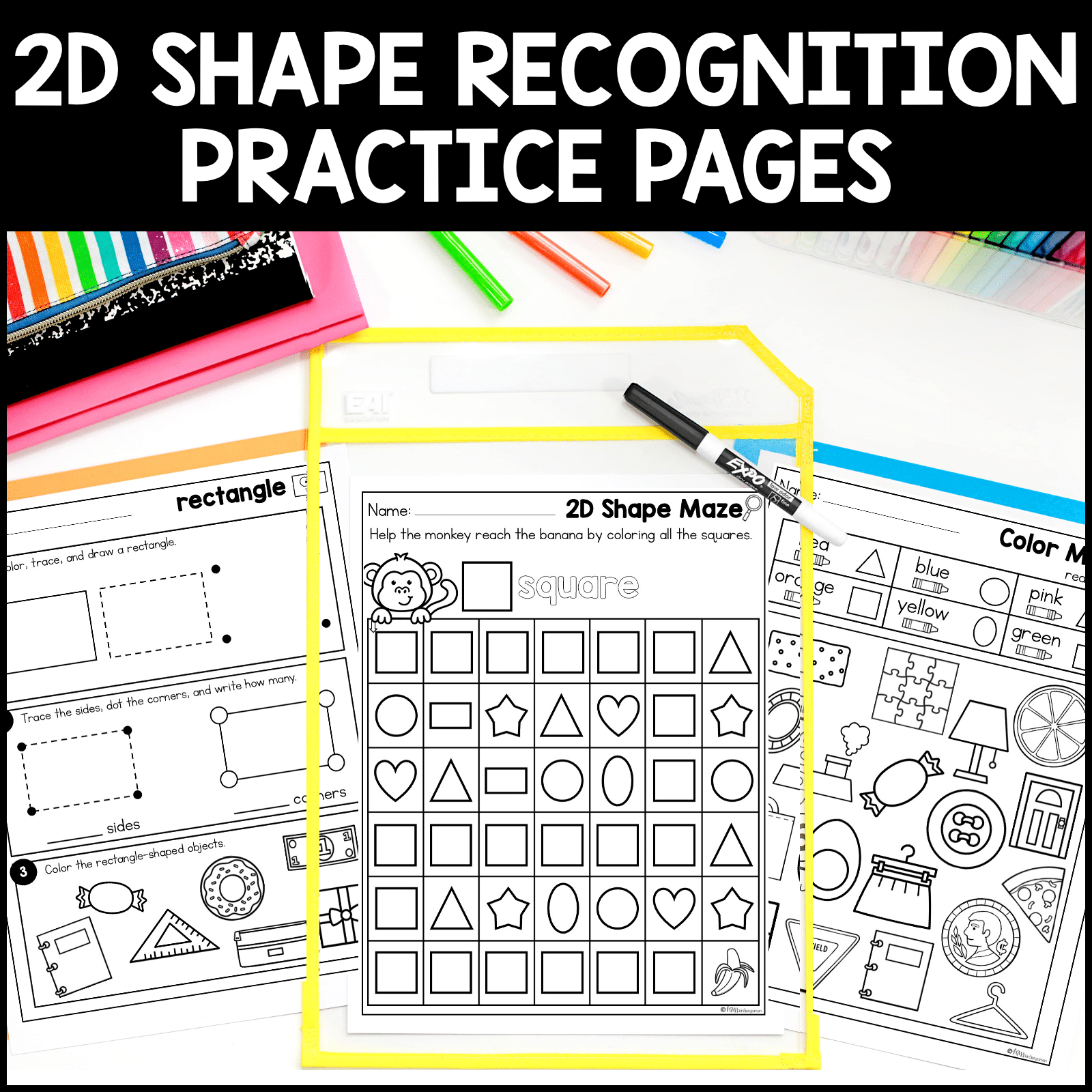 These 2D shape worksheets provide a fun way to help your students practice identifying, drawing, and naming shapes. Use as traditional worksheets or slide these pages into clear sheet protectors and have your students use dry-erase markers for continuous practice.