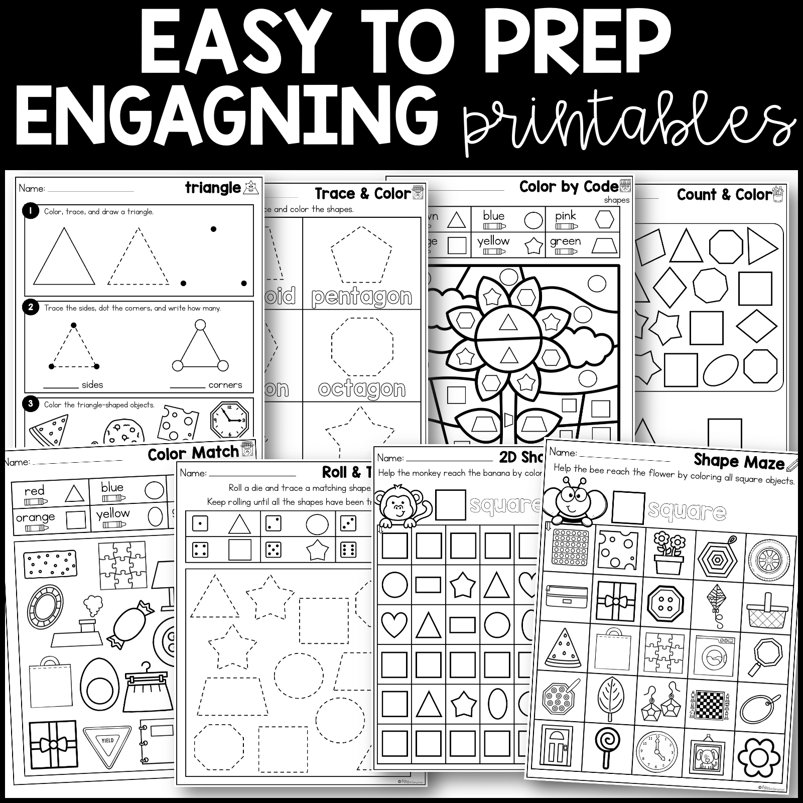 These 2D shape worksheets provide a fun way to help your students practice identifying, drawing, and naming shapes.