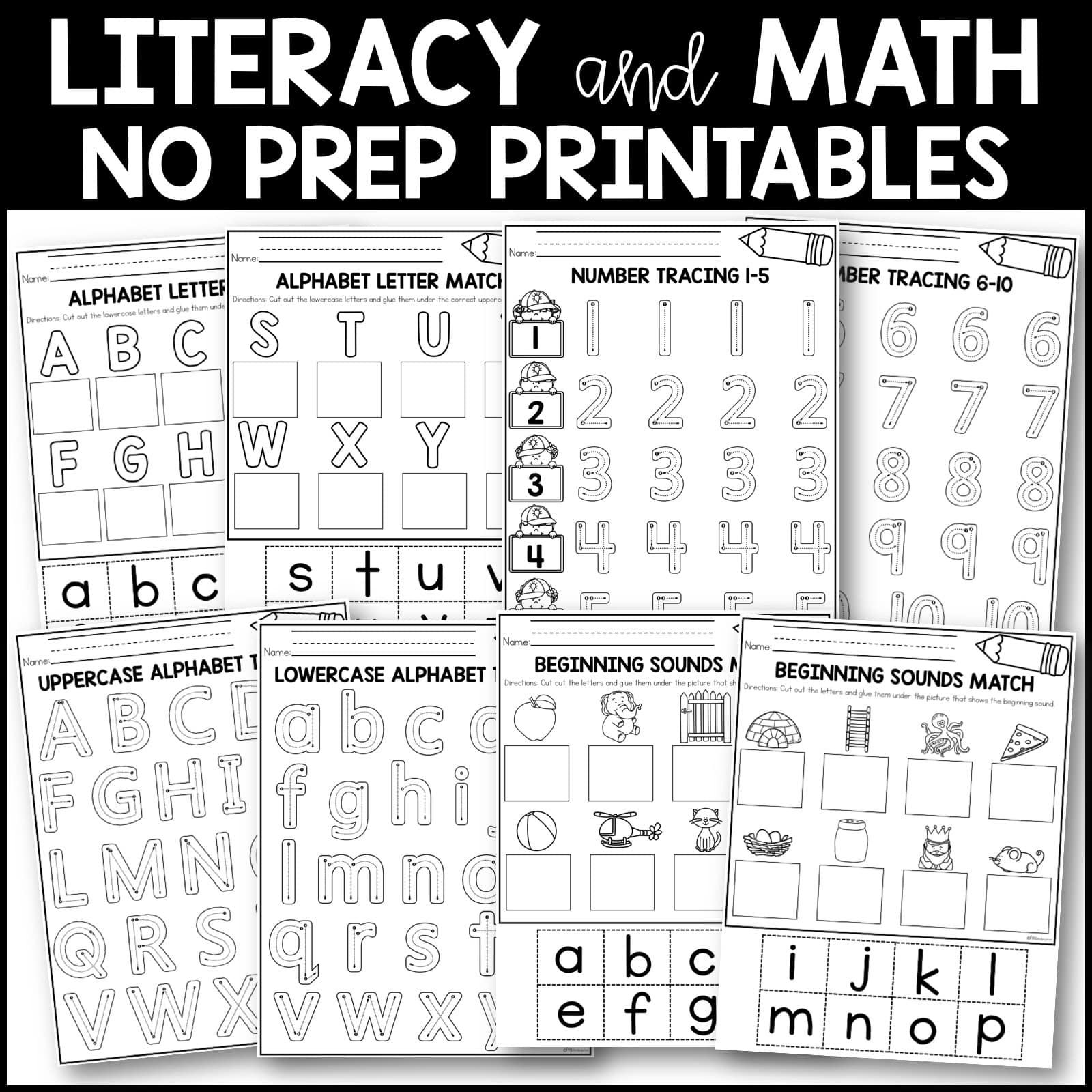 These back-to-school math and literacy worksheets include everything you need to ensure you and your students have a great back-to-school season. The beginning of the school year can be overwhelming, but these no-prep printables help ease the overwhelm, and provide you with quality materials designed specifically for kindergarteners. A great way to assess what students already know, without a lengthy assessment!