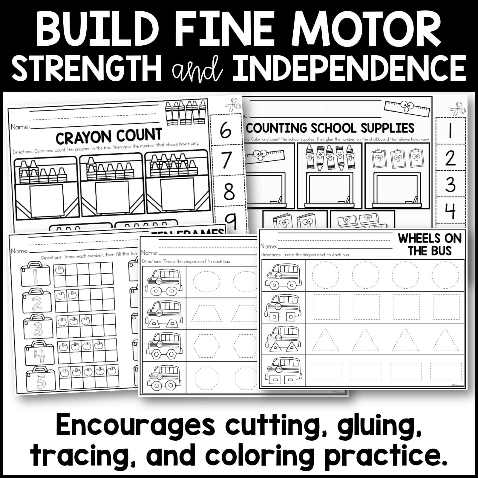 These interactive back-to-school themed printables provide your students with fine motor practice including tracing, cutting, gluing, and coloring. Use these worksheets during the first week and month of school, or anytime your students need extra practice. Just print and go!