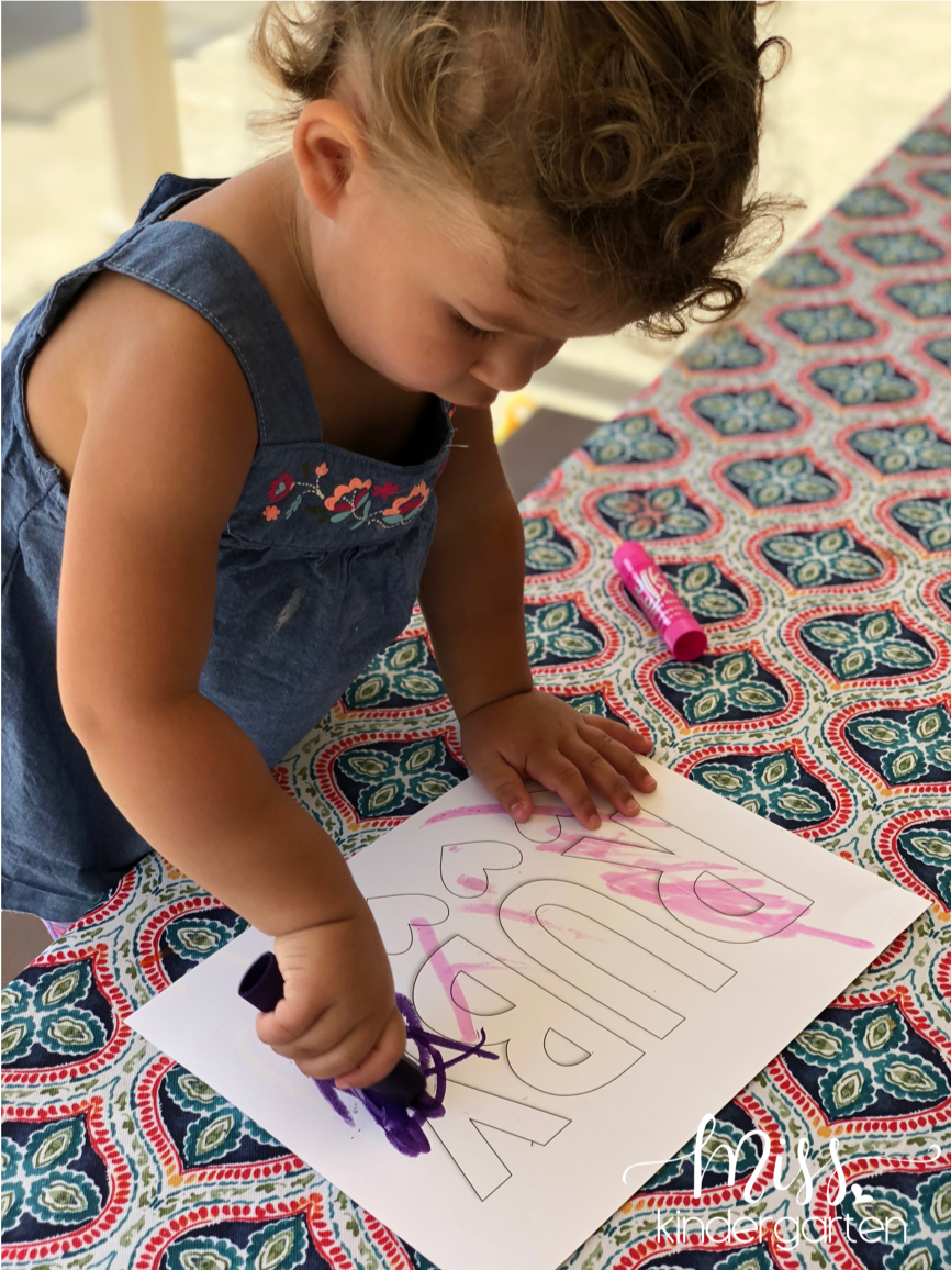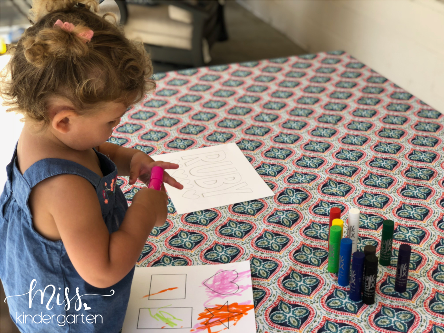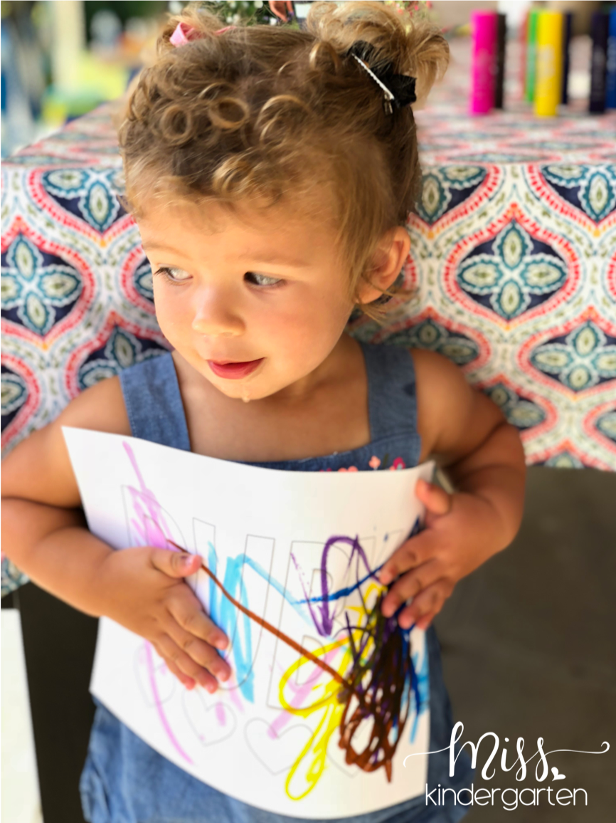 She made sure to put the lid back on the paint sticks after she used them which is great fine motor practice as well.